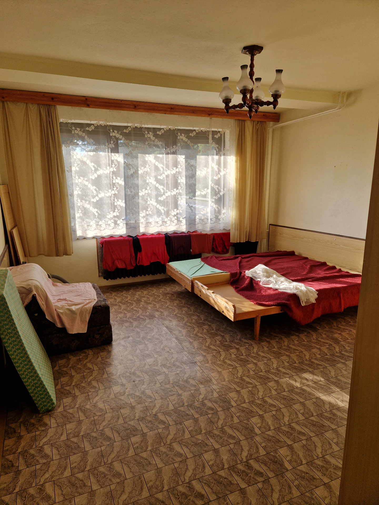 Pôvodná izba s dobovým nábytkom a textíliami (08/2024) → menší dorm s oknom a denným svetlom.